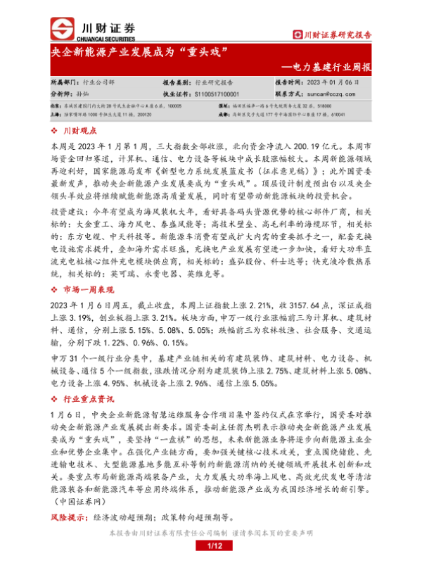 【川财证券】【20230106】电力基建行业周报:央企新能源产业发展成为“重头戏”-12页 行业研究