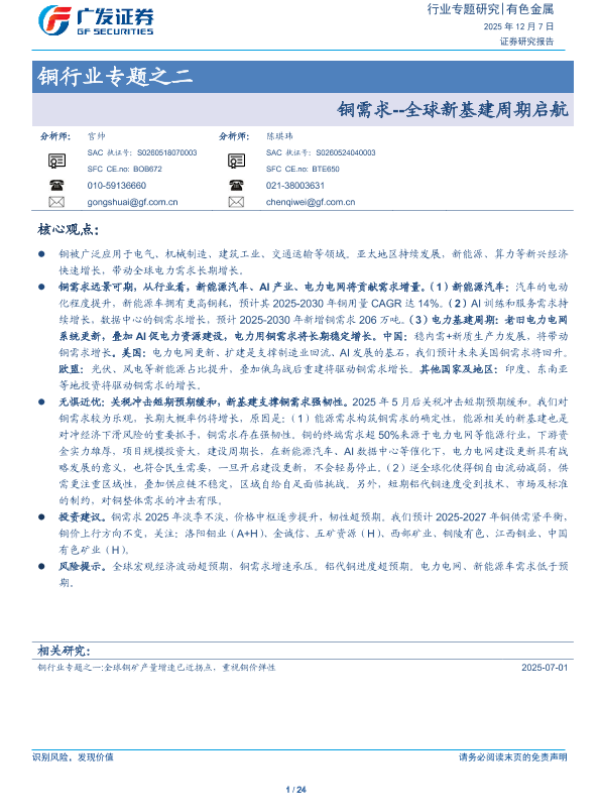 【广发证券】【202507】铜需求--全球新基建周期启航-24页 证券期货研究报告