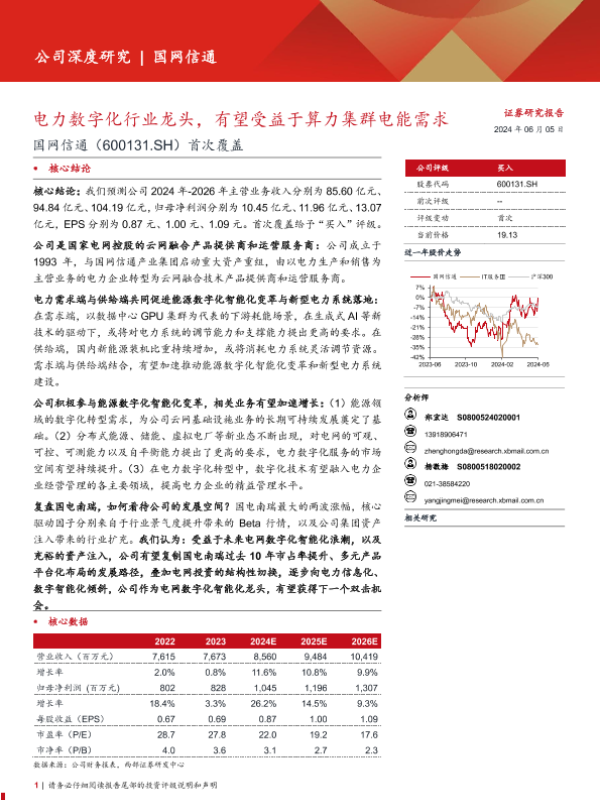 【西部证券】【20240605】国网信通(600131)首次覆盖:电力数字化行业龙头,有望受益于算力集群电能需求-22页 行业研究
