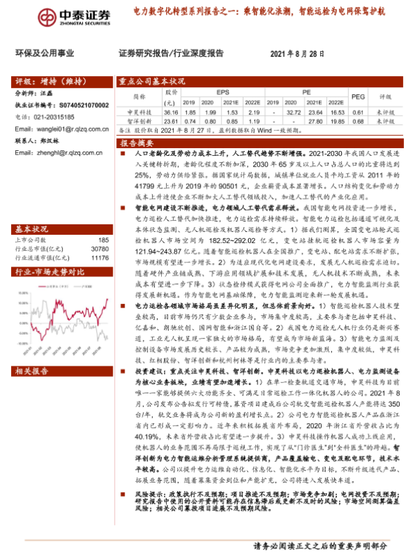 【中泰证券】【20210828】电力数字化转型系列报告之一:乘智能化浪潮,智能运检为电网保驾护航-36页 行业研究
