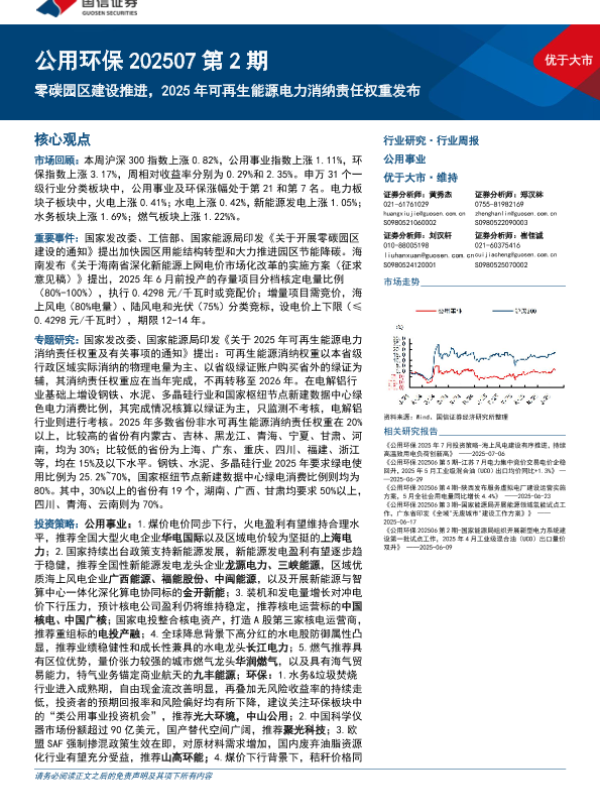 【国信证券】【20250714】公用环保行业202507第2期:零碳园区建设推进,2025年可再生能源电力消纳责任权重发布-29页 行业研究