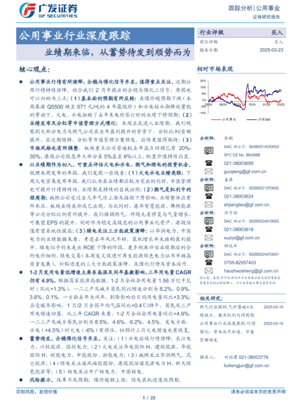 【广发证券】【20250323】公用事业行业深度跟踪:业绩期来临,从蓄势待发到顺势而为-22页 行业研究