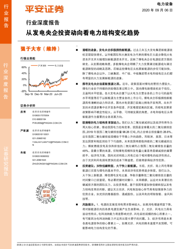 【平安证券】【20200906】电力设备行业深度报告:从发电央企投资动向看电力结构变化趋势-27页 行业研究