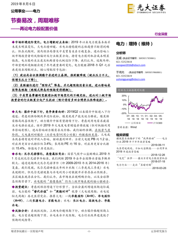 【光大证券】【20190806】再论电力股配置价值:节奏易改,周期难移-24页 行业研究