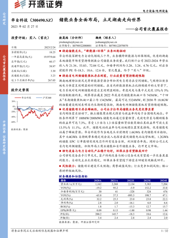 【开源证券】【20230227】华自科技首次覆盖报告:储能业务全面布局,立足湖南走向世界-32页 公司研究