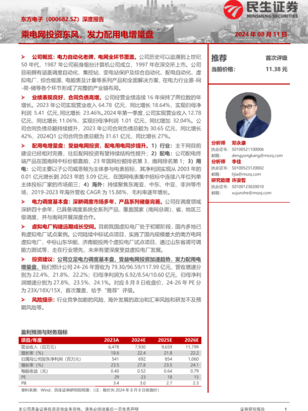 【民生证券】【20240811】20240811-民生证券-东方电子-000682.SZ-深度报告:乘电网投资东风,发力配用电增量盘-36页 行业研究