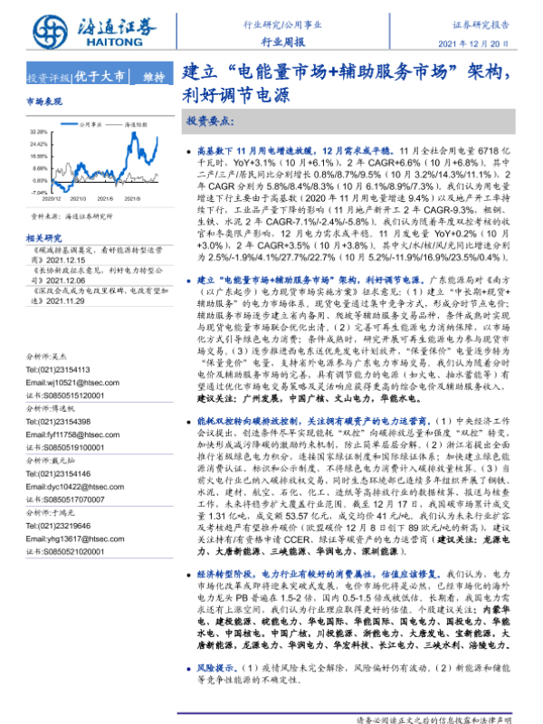 【海通证券】【20211220】建立“电能量市场+辅助服务市场”架构,利好调节电源-2页 行业研究