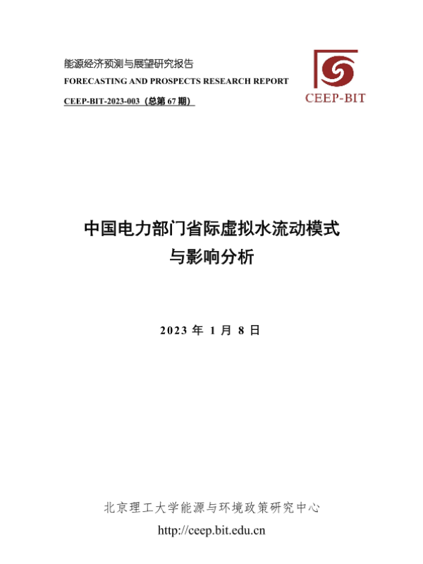 【北京理工大学能源与环境政策研究中心】【20230108】中国电力部门省际虚拟水流动模式与影响分析-24页 行业研究