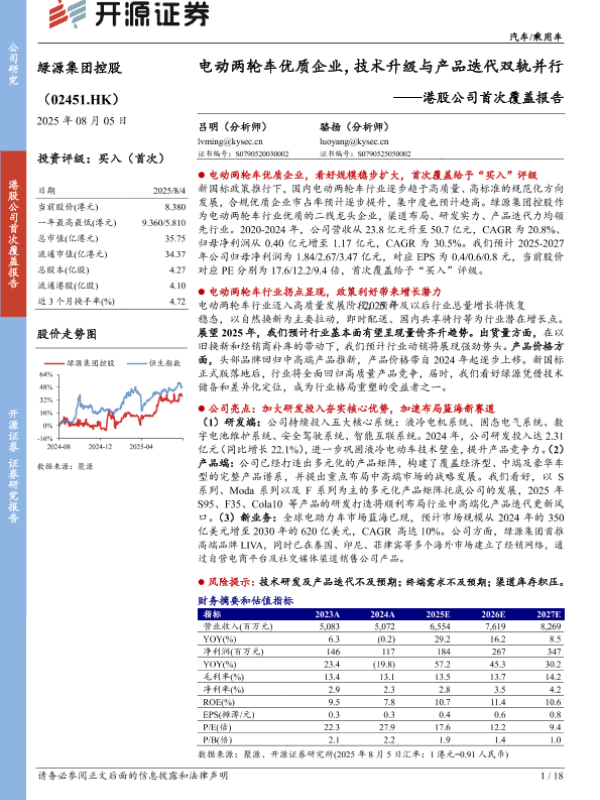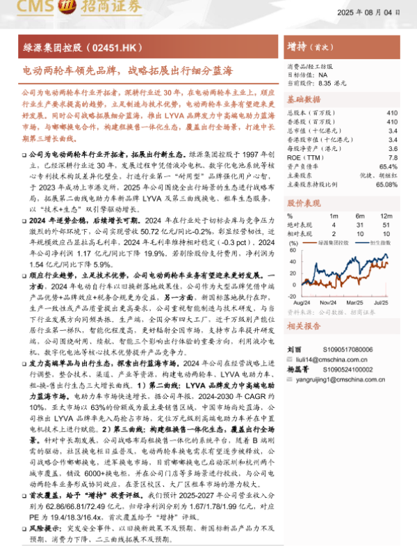 【海通证券】【202508】绿源集团控股:电动两轮车领先品牌,战略拓展出行细分蓝海-19页 证券期货研究报告