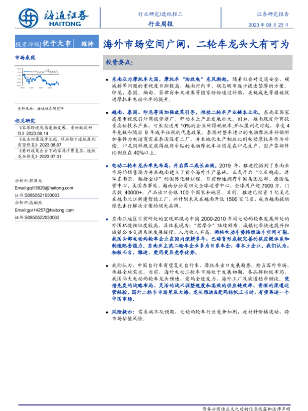 【海通证券】【20230823】20230823-海通证券-造纸轻工行业周报:海外市场空间广阔,二轮车龙头大有可为-10页 行业研究