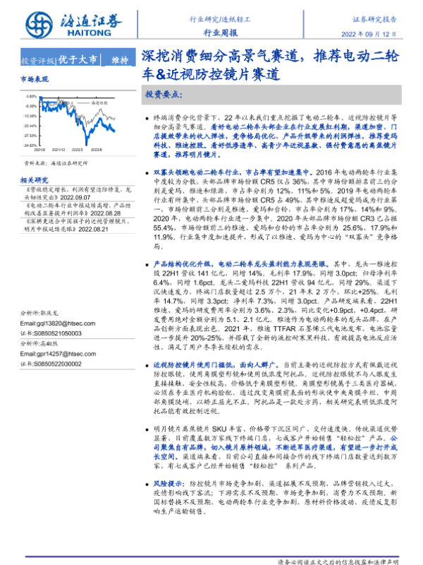 【海通证券】【20220912】20220912-海通证券-造纸轻工行业周报:深挖消费细分高景气赛道,推荐电动二轮车&近视防控镜片赛道-13页 行业研究