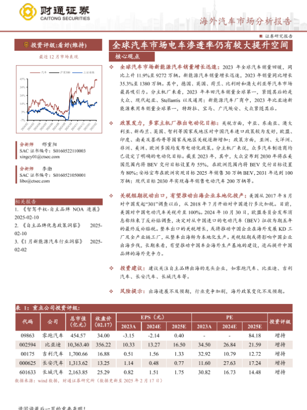 【财通证券】【20250218】海外汽车行业市场分析报告:全球汽车市场电车渗透率仍有较大提升空间-28页 行业研究