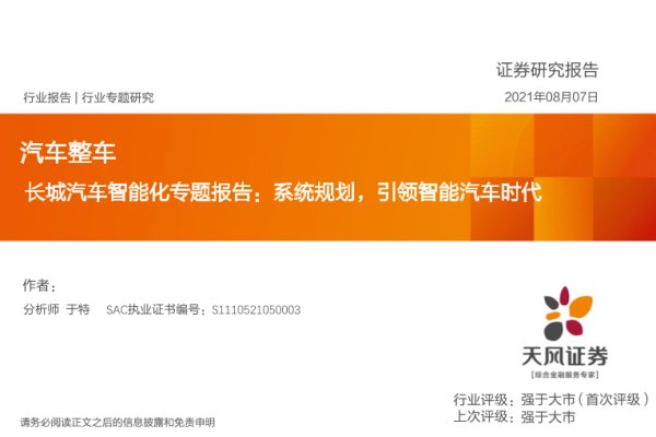 【天风证券】【20210807】汽车整车行业长城汽车智能化专题报告:系统规划,引领智能汽车时代-40页 行业研究