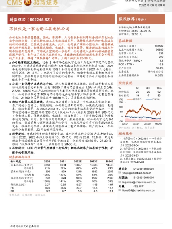 【信达证券】【20220316】20220316-信达证券-蔚蓝锂芯-002245.SZ-公司首次覆盖报告:电动工具电池龙头企业,业绩快速增长-20页 行业研究