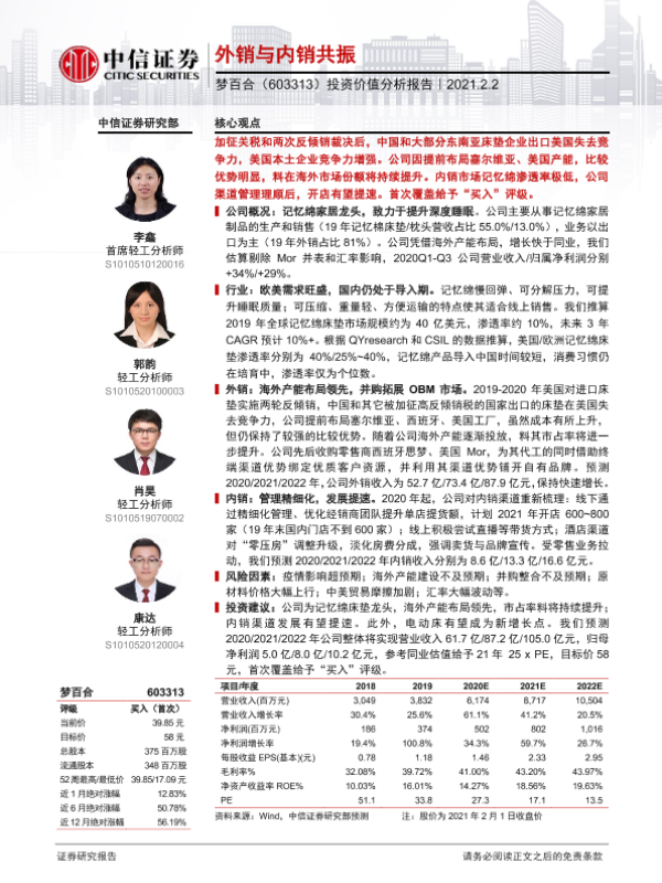 【中信证券】【20210202】20210202-中信证券-梦百合-603313.SH-投资价值分析报告:外销与内销共振-30页 行业研究