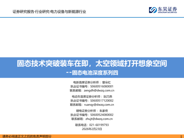 【东吴证券】【202602】固态技术突破装车在即,太空领域打开想象空间-31页 证券期货研究报告