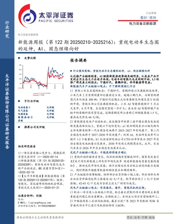 【太平洋证券】【20250218】20250218-太平洋-新能源周报(第122期):重视电动车生态圈的延伸,AI、固态继续向好-26页 行业研究