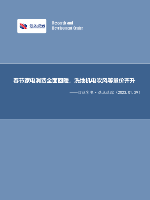 【信达证券】【20230129】信达家电· 热点追踪:春节家电消费全面回暖,洗地机电吹风等量价齐升-12页 行业研究