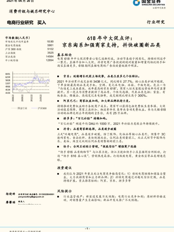 【国金证券】【20210620】618年中大促点评:京东淘系加强商家支持,抖快破圈新品类-11页 行业研究