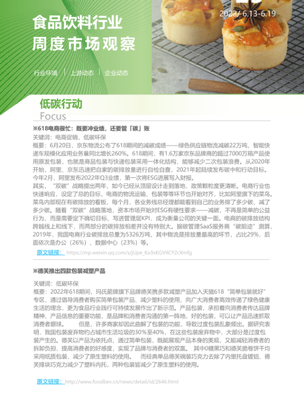 【艾瑞咨询】【20220619】2022年第25周:食品饮料行业周度市场观察-10页 市场调研