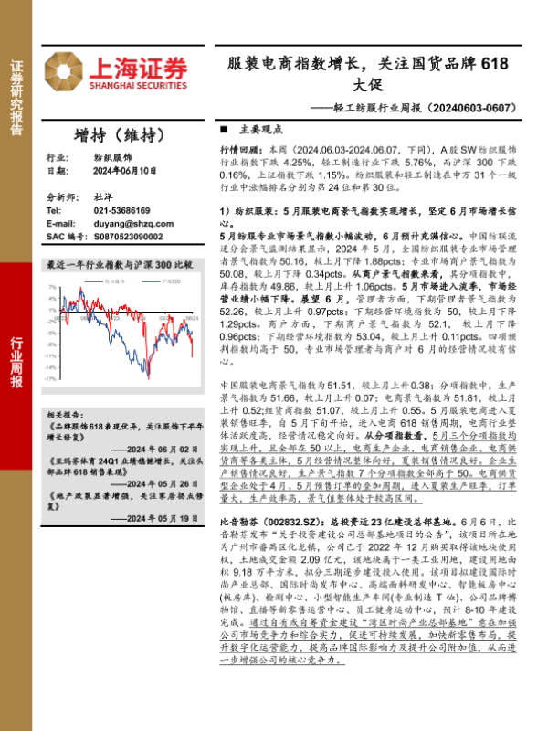 【上海证券】【20240610】20240610-上海证券-纺织服饰行业周报:服装电商指数增长,关注国货品牌618大促-11页 行业研究