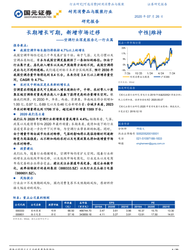 【国元证券】【20200726】空调行业深度报告之一行业篇:长期增长可期,新增市场迁移-33页 行业研究