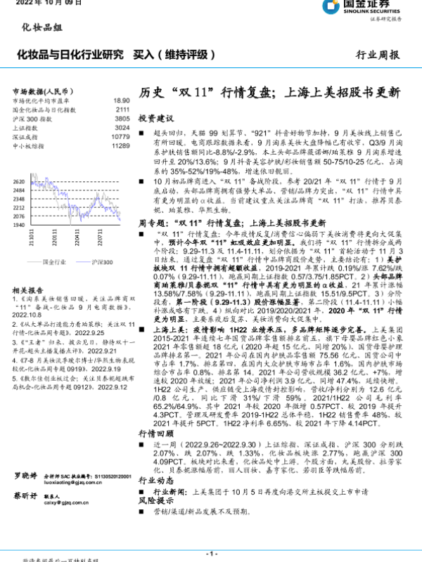 【国金证券】【20221009】20221009-国金证券-化妆品与日化行业研究:历史“双11”行情复盘;上海上美招股书更新-12页 行业研究