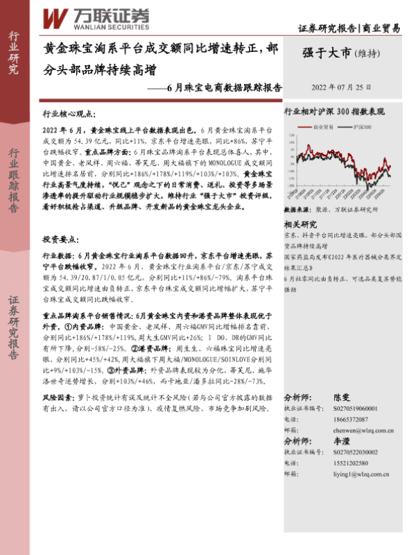 【万联证券】【20220725】6月珠宝电商数据跟踪报告:黄金珠宝淘系平台成交额同比增速转正,部分头部品牌持续高增-6页 行业研究