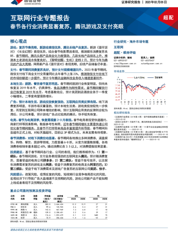 【国信证券】【20230205】互联网行业专题报告:春节各行业消费显著复苏,腾讯游戏及支付亮眼-24页 行业研究