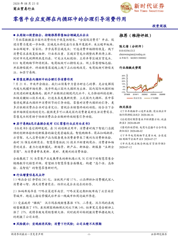 【新时代证券】【20200823】商业贸易行业投资周报:零售平台应发挥在内循环中的合理引导消费作用-15页 行业研究