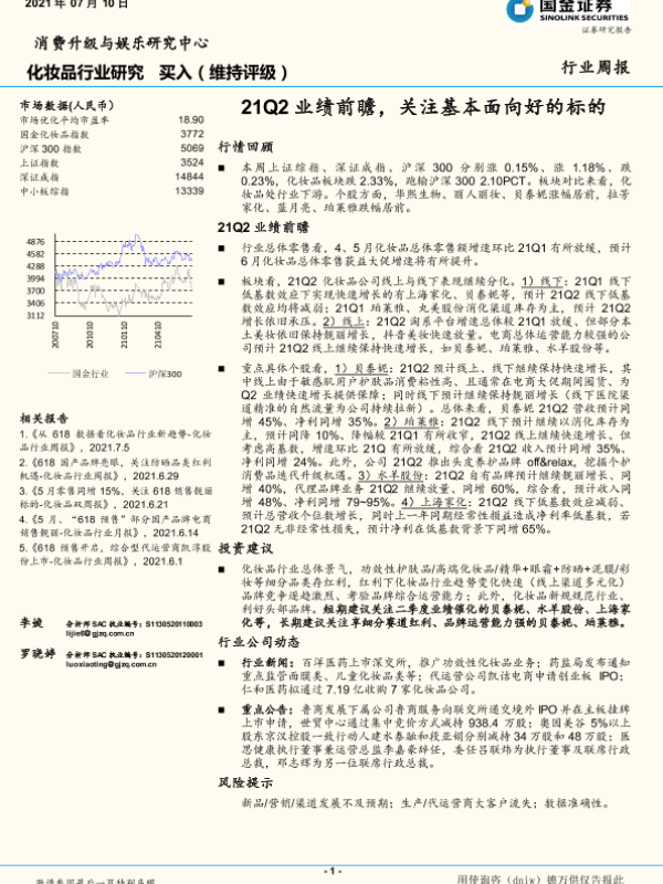 【国金证券】【20210710】化妆品行业研究周报:21Q2业绩前瞻,关注基本面向好的标的-12页 行业研究