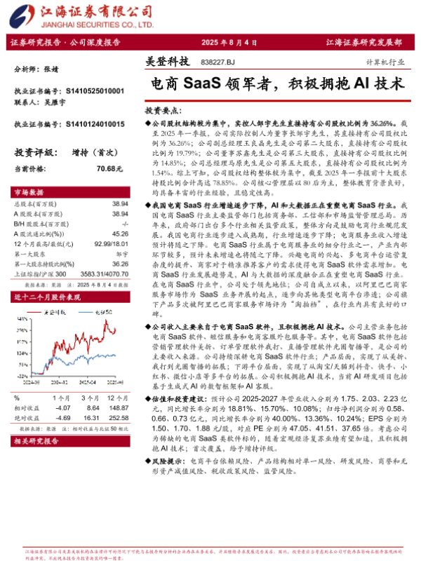 【江海证券】【20250804】美登科技-电商 SaaS领军者,积极拥抱 AI技术-26页 证券期货研究报告