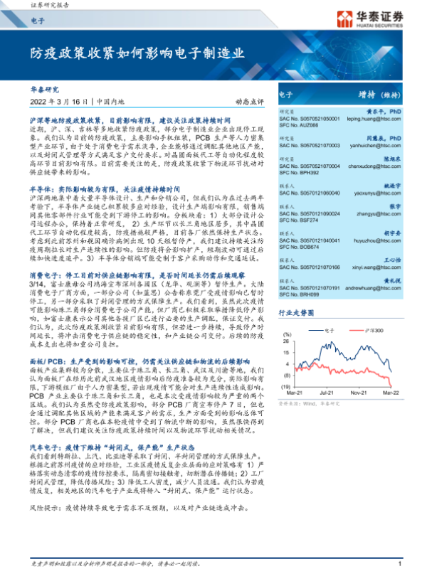 【华泰证券】【20220316】防疫政策收紧如何影响电子制造业-5页 行业研究