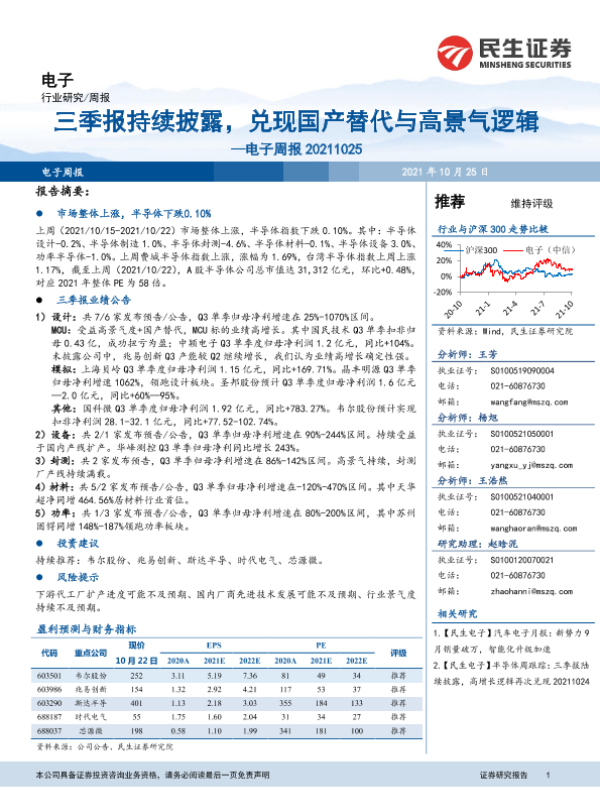 【民生证券】【20211025】20211025-民生证券-电子周报:三季报持续披露,兑现国产替代与高景气逻辑-15页 行业研究
