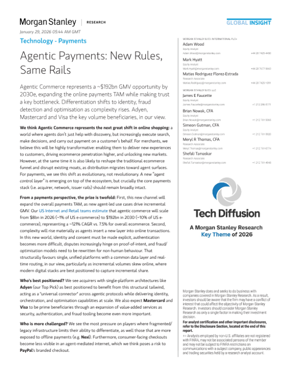 【Morgan Stanley】【202601】Agentic Payments New Rules, Same Rails-36页 证券期货研究报告
