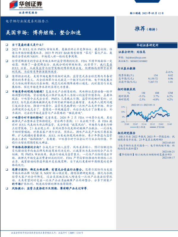【华创证券】【20230512】电子烟行业深度系列报告二:美国市场,博弈继续,整合加速-24页 行业研究