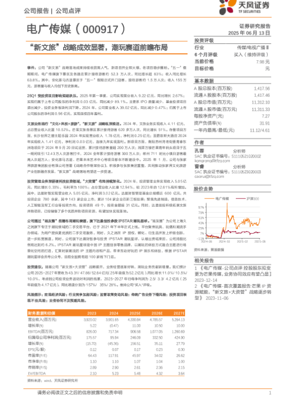 【天风证券】【20250613】电广传媒-新文旅战略成效显著 潮玩赛道前瞻布局-3页 公司研究