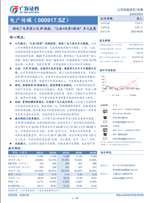【广发证券】【20230608】电广传媒(000917.SZ):湖南广电资源以及IP赋能,“文旅+投资+游戏”多元发展-35页 行业研究