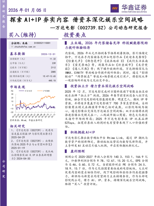 【华鑫证券】【202601】探索 AI+ IP夯实内容借资本深化娱乐空间战略 —万达电影(002739.SZ)公司动态研究报告-5页 证券期货研究报告