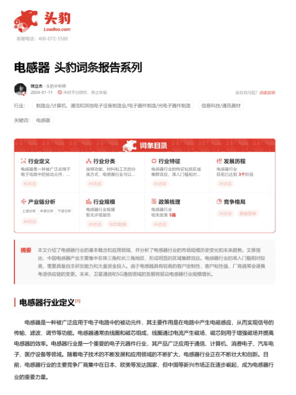 【头豹研究院】【20240304】2024年03月04日更新-【头豹研究院】电感器 头豹词条报告系列-20页 行业研究