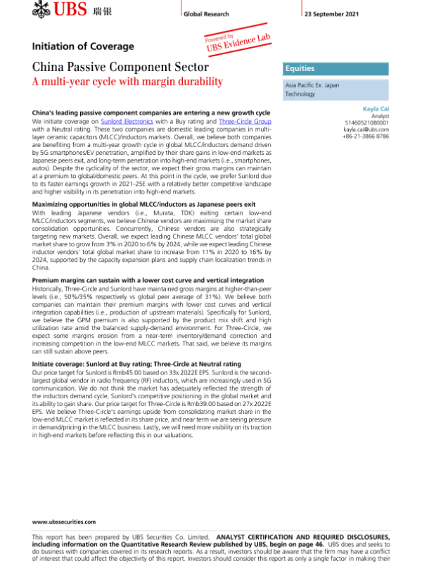 【UBS Securities Co. Limited】【20210923】瑞银-中国无源元件行业-一个具有持久利润率的多年周期-54页 行业研究