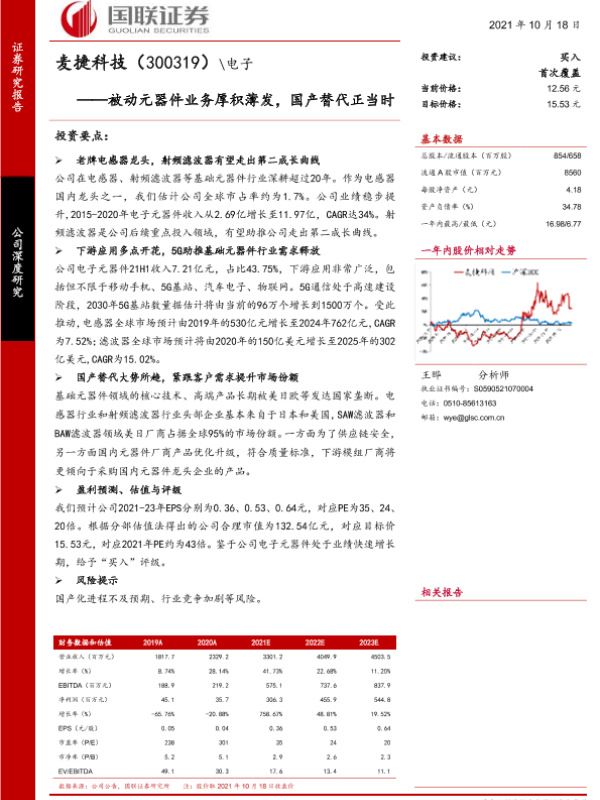 【国联证券】【20211018】麦捷科技-300319.SZ-被动元器件业务厚积薄发,国产替代正当时-28页 行业研究