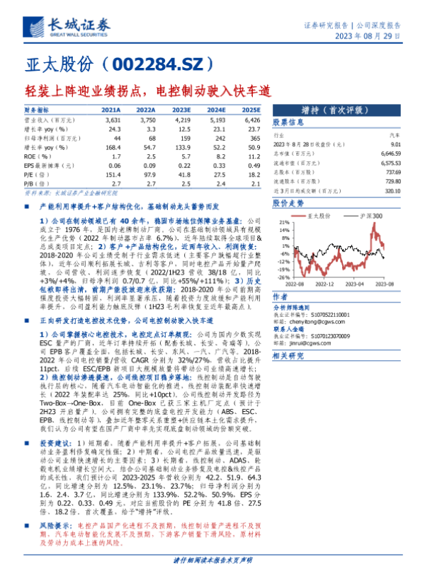 【长城证券】【20230829】轻装上阵迎业绩拐点,电控制动驶入快车道-22页 行业研究