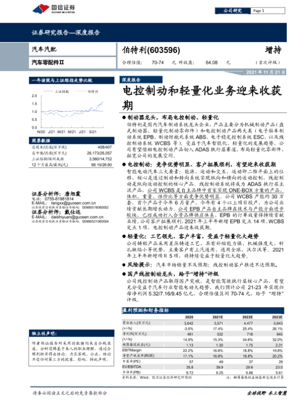 【国信证券】【20211121】伯特利-603596.SH-电控制动和轻量化业务迎来收获期-33页 行业研究