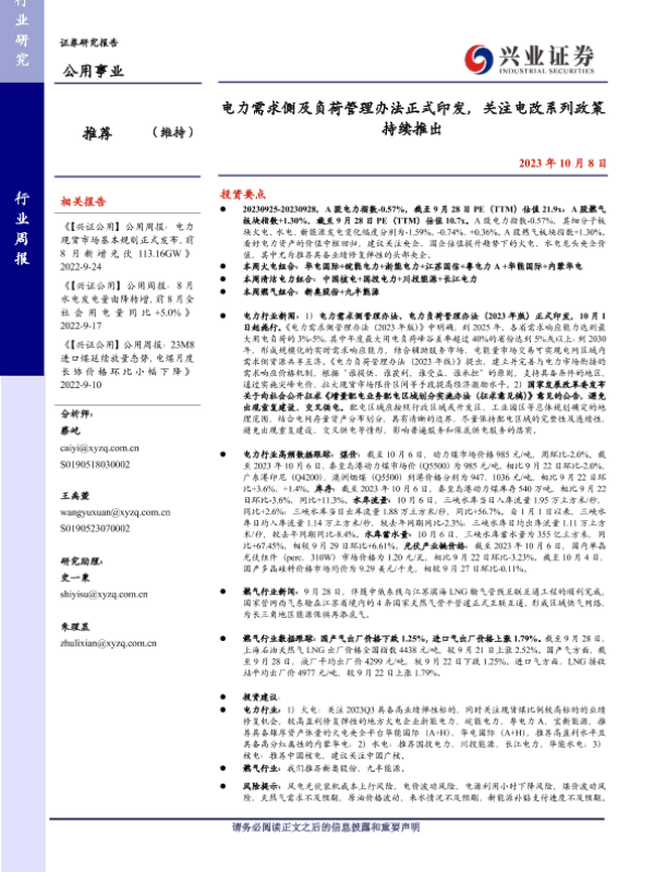 【兴业证券】【20231008】电力需求侧及负荷管理办法正式印发,关注电改系列政策持续推出-26页 行业研究