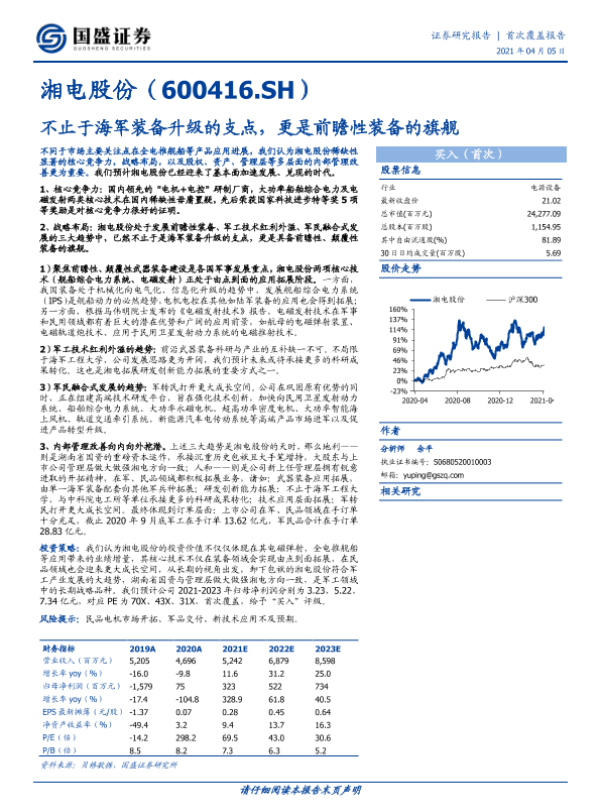 【国盛证券】【20210405】湘电股份:不止于海军装备升级的支点,更是前瞻性装备的旗舰-20页 行业研究
