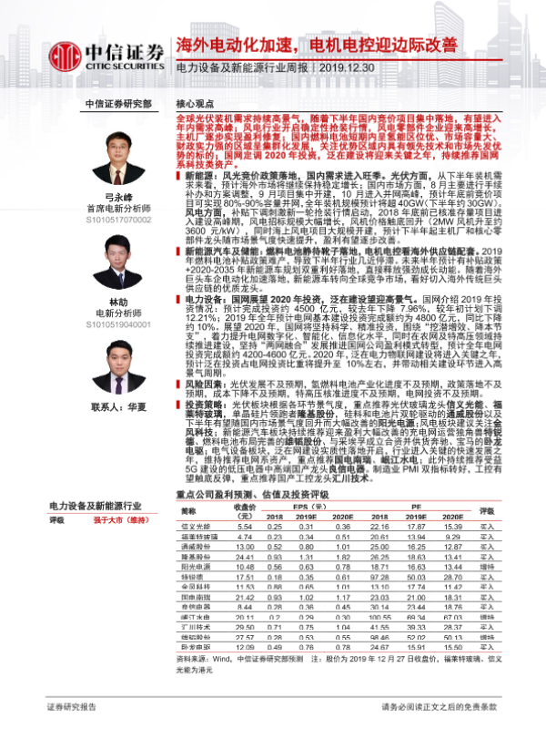 【中信证券】【20191230】电力设备及新能源行业周报:海外电动化加速,电机电控迎边际改善-10页 行业研究