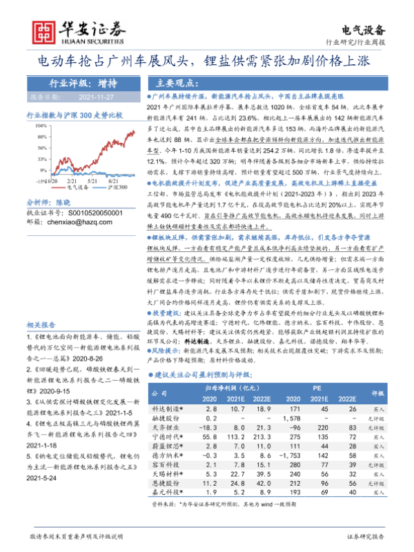 【华安证券】【20211127】电动车抢占广州车展风头,锂盐供需紧张加剧价格上涨-22页 行业研究