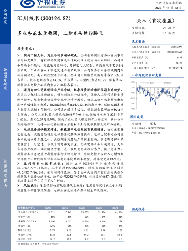 【华福证券】【20221113】汇川技术-多业务基本盘稳固,工控龙头静待腾飞-22页 行业研究