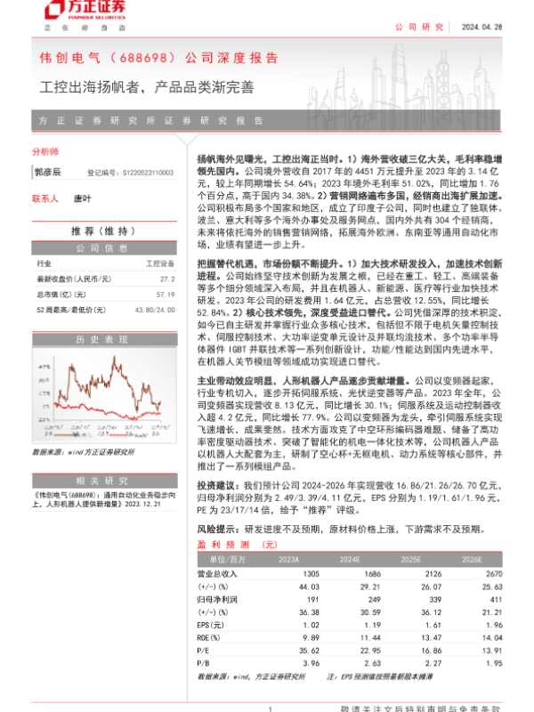 【方正证券】【20240428】伟创电气公司深度报告:工控出海扬帆者,产品品类渐完善-23页 公司研究